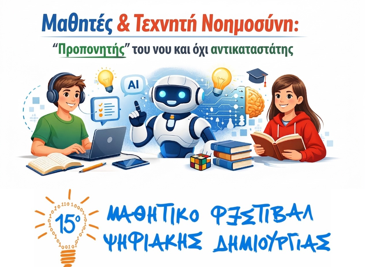 Στο πλαίσιο του 15ου Μαθητικού Φεστιβάλ Ψηφιακής Δημιουργίας, με θέμα τη σχέση των μαθητών με την Τεχνητή Νοημοσύνη και τον ρόλο της στη σύγχρονη μαθησιακή διαδικασία, ανακοινώνεται η διοργάνωση ενός σημαντικού και επίκαιρου διαδικτυακού σεμιναρίου (webinar).