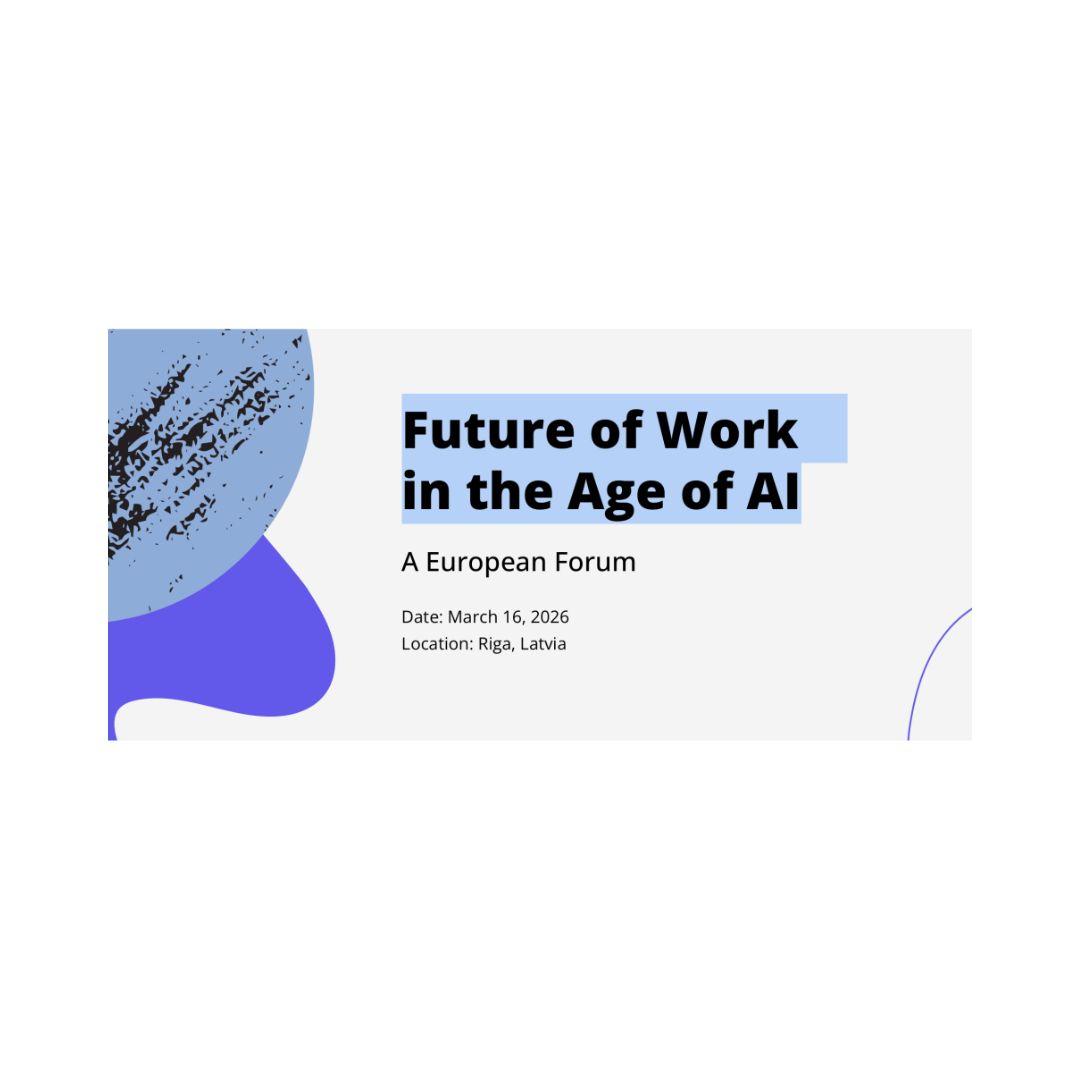Στις 16 Μαρτίου 2026, η πρωτεύουσα της Λετονίας, Ρίγα, φιλοξενεί το διεθνές φόρουμ «Το μέλλον της εργασίας στην εποχή της Τεχνητής Νοημοσύνης», που διοργανώνεται από το Ινστιτούτο Future of Work, το ERDA, τον Κρατικό Οργανισμό Απασχόλησης της Λετονίας και την Google.