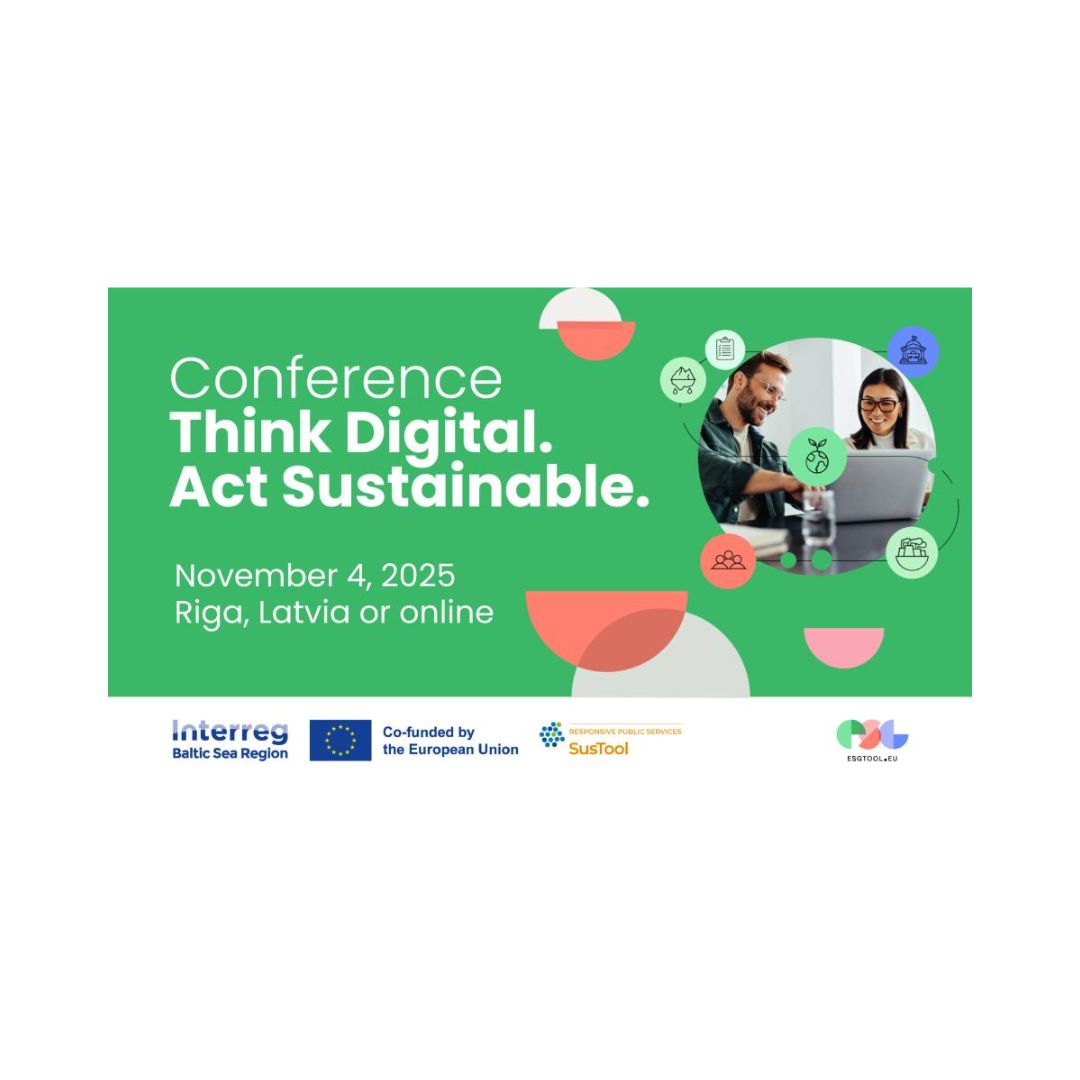 Στις 4 Νοεμβρίου 2025, η Ρίγα θα φιλοξενήσει το διεθνές συνέδριο «Ψηφιακή Σκέψη. Βιώσιμη Δράση», το οποίο διοργανώνεται από το Υπουργείο Προστασίας του Περιβάλλοντος και Περιφερειακής Ανάπτυξης της Δημοκρατίας της Λετονίας (VARAM), σε συνεργασία με το έργο SusTool (Εργαλείο Αναφοράς Βιωσιμότητας), που υποστηρίζεται από την πρωτοβουλία Interreg της Περιοχής της Βαλτικής Θάλασσας.